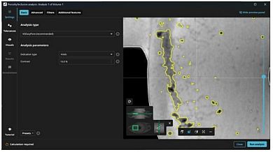 Efficient workflow: Fewer clicks, more overview, maximum control. For the first time, all porosity/inclusion analysis procedures have been brought together in a single solution. This allows for direct access to the core functions and eliminates the need to switch between different dialogs, saving valuable time.