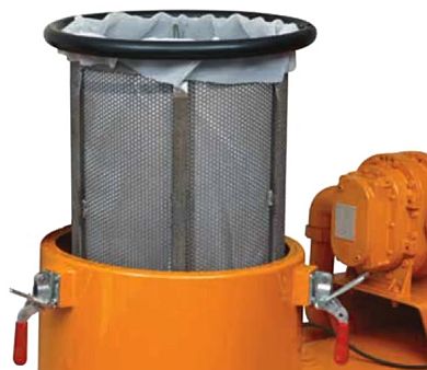 Common polypropylene sleeve liners filter to a nominal 50 microns. If finer filtration is required, such as is the case in certain grinding applications, then a single-use paper filter sleeve can be inserted into the chip basket for a nominal filtration of 20 microns.