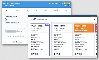 MachineMetrics pulls work orders, routings, standards, and schedules from Epicor and presents them directly at the machine. Operators don't have to interpret spreadsheets or guess what's next; the official plan is visible in the same interface they use to run and track the job.