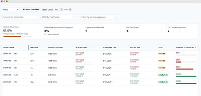 MachineMetrics doesn't just monitor schedules -- it powers execution. Real-time schedule attainment tracking connects what was planned in your ERP to what's actually happening on machines, turning reactive expediting into proactive production control.